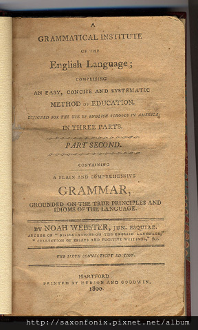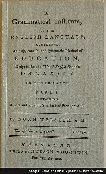 附註 : 韋伯斯特(Noah Webster)所著的 { A Grammatical Institute Of The English Language},一共有三個部分,並分成三個不同時期出版: